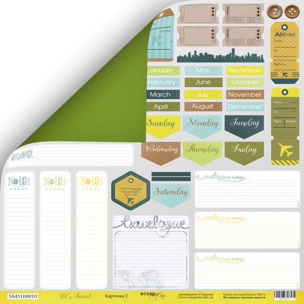 0 отзывов к товару Двусторонний лист бумаги ScrapМир Let's Travel "Карточки 2" размер 30*30см, 190гр