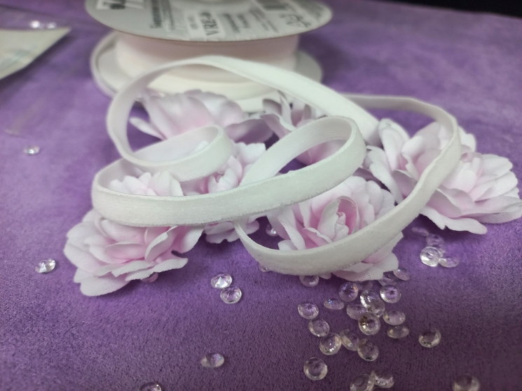 0 отзывов к товару Бархатная эластичная лента "Белая" 6 мм, 1 метр
