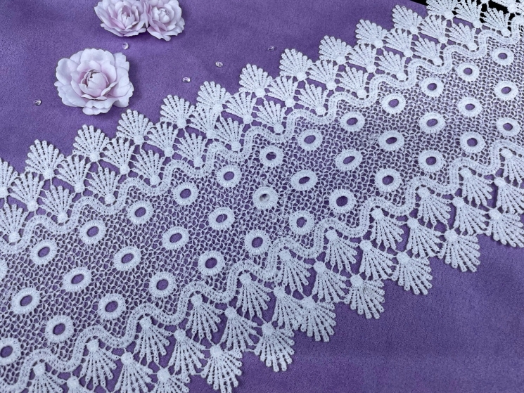 0 отзывов к товару Кружево матовое белое гипюр, ширина 17 см, отрез 50 см