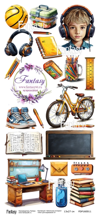 0 отзывов к товару Лист для вырезания FANTASY "Школьные истории-3" размер 12*27 см, 230 гр