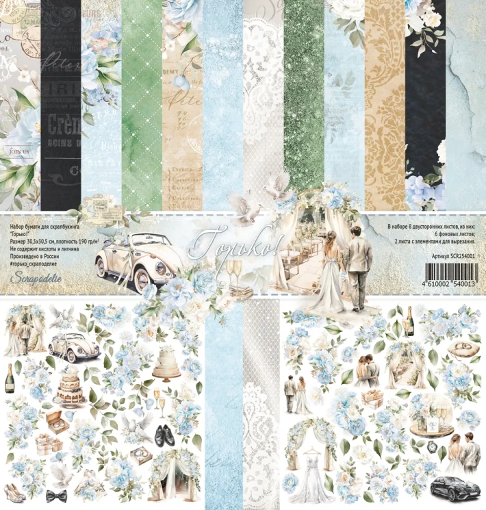 Набор бумаги для скрапбукинга “Горько!” 30×30 см Scrapodelie